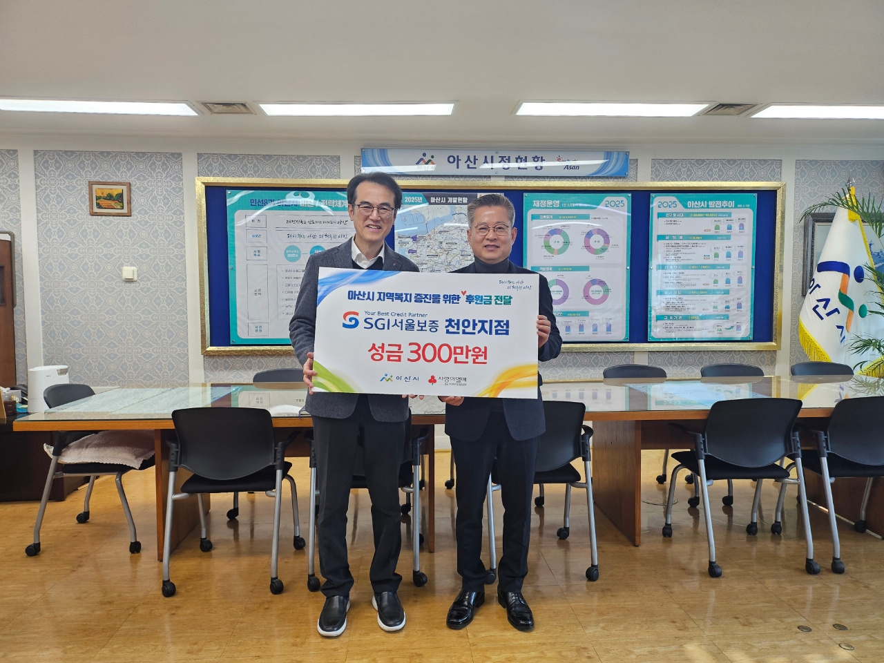 이주용 SGI서울보증 천안지점장은 "지역사회에 실질적 도움을 줄 수 있는 나눔 활동에 참여하게 되어 뜻깊다"며 "앞으로도 지역과 함께 성장하며 사회적 책임을 다하겠다"고 말했다.